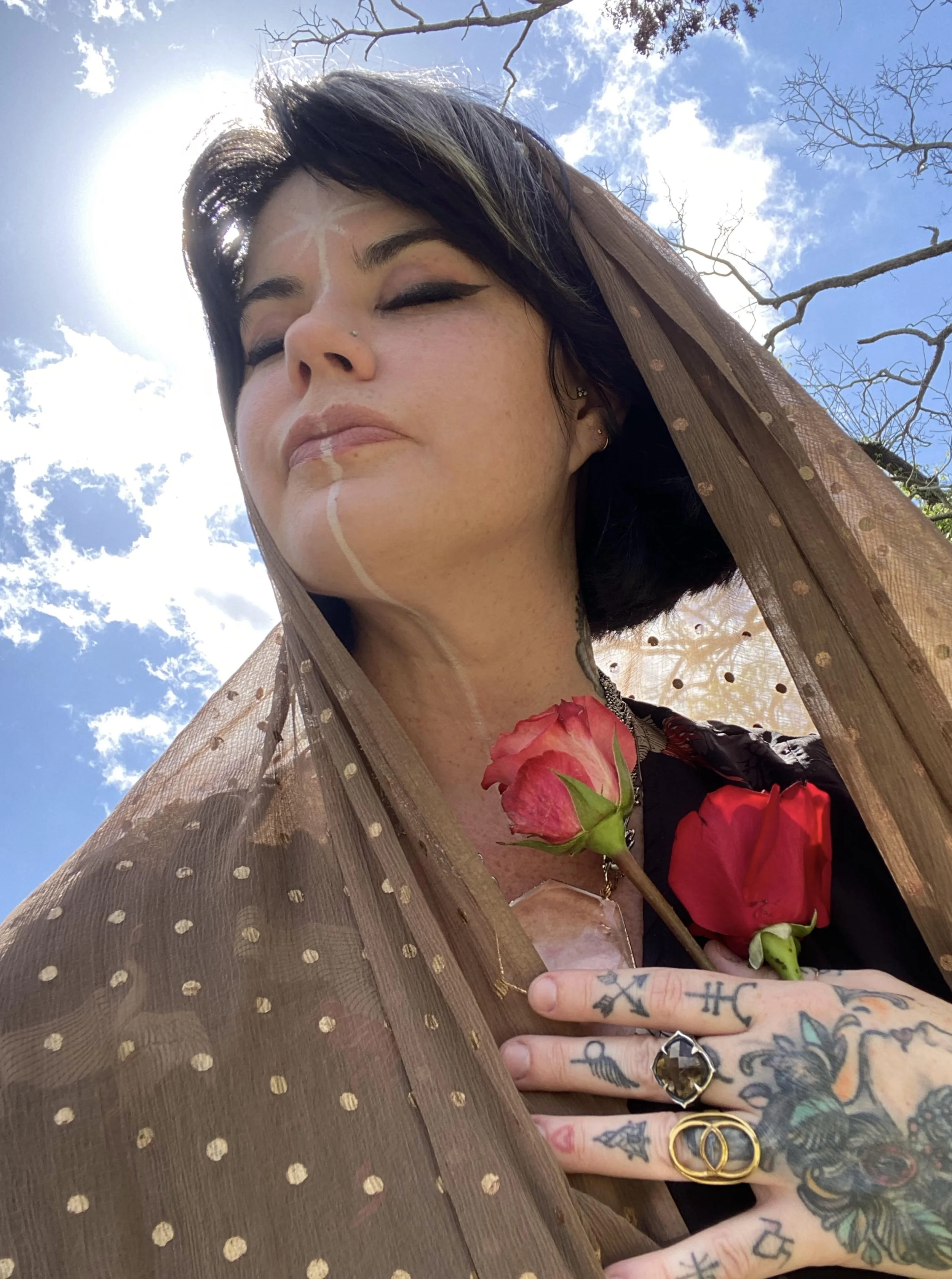 Priestesses of the Rose has brought so much awareness to my inner landscape through the Rosa Mystica guides as their journey mirrors our own in a myriad of ways, massive and subtle. It’s helped me better understand our ancient lineage linking into our cosmic lineage as well as connecting some major spiritual/religious dots I didn’t fully realize until walking this path. The celestial and mystical curriculum has been my most favorite aspects providing deep personal inquiry and ritual guidance for my ongoing devotional practices. So much magick has come alive for me this year that I wouldn’t have connected to unless stepping into this circle. I’m carrying more awareness of self therefore I carry more peace, compassion, love and tolerance of others in the world around me. I’m able to feel more love for myself and more love for others through this journey of gnosis and remembrance. Though we all experience challenging and personal trauma that alter and change us, POTR has shown me how resurrection is possible and is absolutely critical for healing in our lives. Through the lens of resurrection, we’re able to emerge embodied, whole, individually enlightened, liberated and sovereign. Tears fill my eyes with such heartfelt gratitude because of this spiral. It’s a